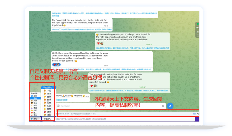 采用ChatGPT4 实现毫秒级别的高效翻译,满足客户的感官上的需求。