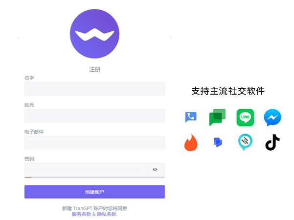聚合全球主流社交应用,实现双向翻译。